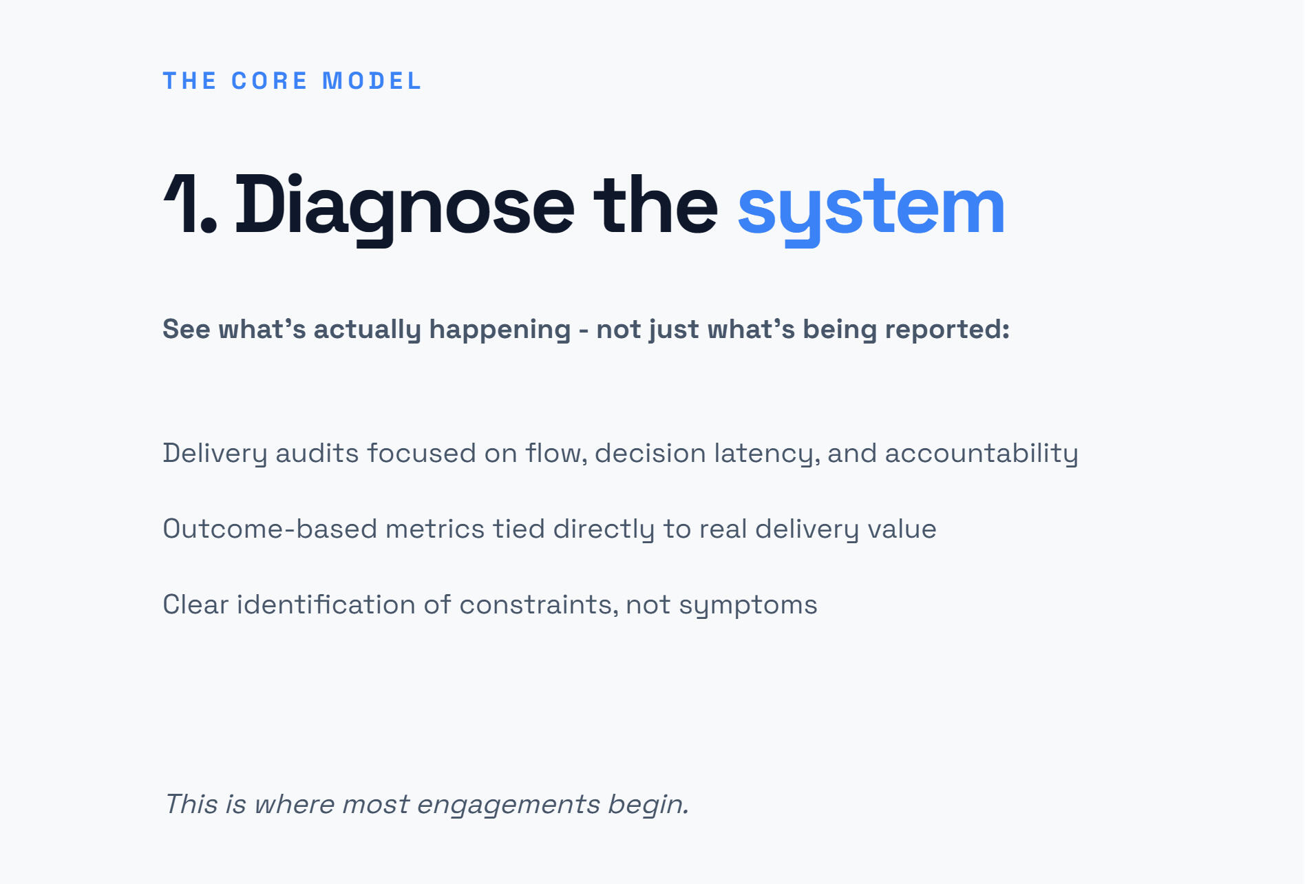 1. Diagnostic & Advisory: When Clarity is the Constraint System-level delivery assessments and audits